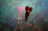 Borosilicate Glass Stir Stick featuring a Red, Satin Pink or Black Heart with Drips design. The Red has a slight sparkle to it as well.
