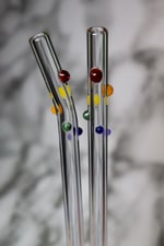 Set of 2 x 8" Rainbow Swirl Borosilicate Glass Straws, 1 x Bent and 1 x Straight straw (Only 1 set available on this listing)