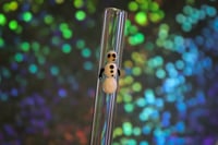 Borosilicate Glass drinking straw with a cute little snow friend.